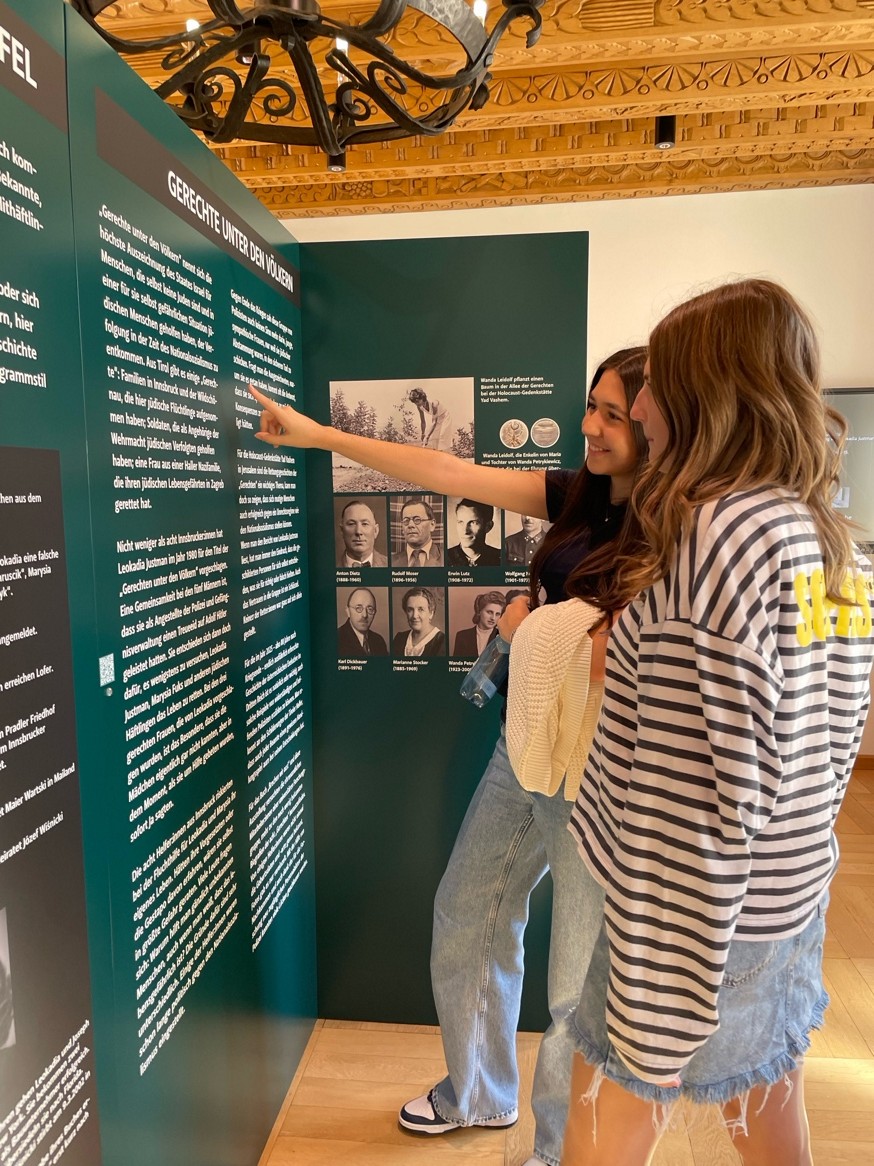 „Brechen wir aus“ ist eine besondere Sonderausstellung im Landhaus in Innsbruck, die vom Überleben der jungen Leokadia Justman erzählt. Am 18.09.2025 besuchte die 7A-Klasse diese Ausstellung und erfuhr mehr über die Lebensgeschichte dieser mutigen Frau. Teils durch die Erzählungen der Ausstellungsführerin und teils durch die eigene Erarbeitung konnten die einzelnen Stationen der Flucht und Rettung der jungen Jüdin sehr gut nachvollzogen werden. Ein sehr interessanter Vormittag, der nicht nur die Verbrechen dieser Zeit aufzeigte, sondern auch die Tatsache, dass es Menschen gab, die ihr Leben für andere aufs Spiel setzten.