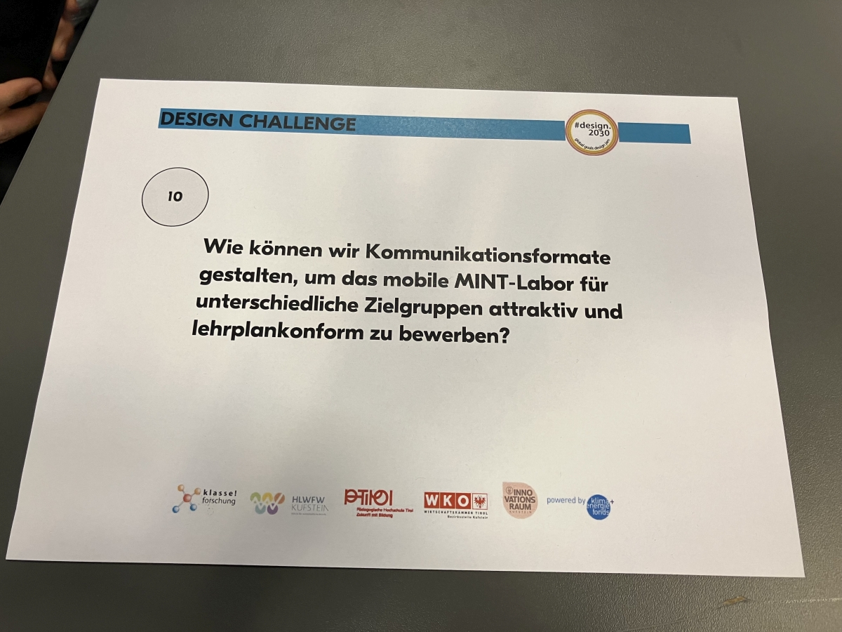 Die Teilnehmenden entwickelten vielfältige Ansätze – von praktischen Experimentierstationen über interaktive Modelle bis hin zu digitalen Lösungen. Der Design Jam bot nicht nur Raum für Kreativität, sondern auch für den Austausch mit Expert:innen aus dem Energiebereich. Die gesammelten Ideen bilden nun die Grundlage für die weitere Entwicklung des mobilen Energielabors und fließen in die geplanten MINT Labs in Tirol ein, die von klasse!forschung im Auftrag des Landes Tirol koordiniert werden.